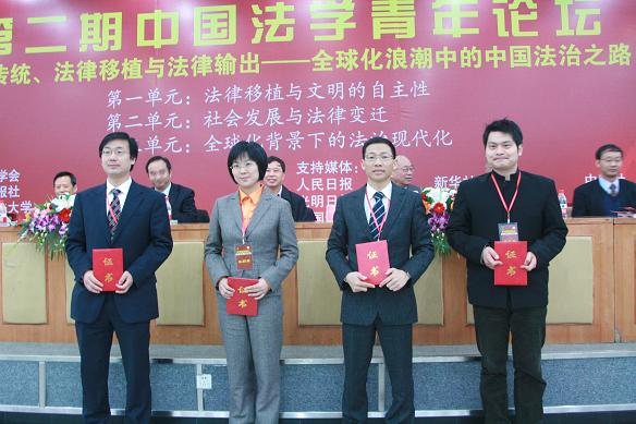下面进行第二个程序,颁发论坛报告人k8凯发天生赢家一触即发人生的荣誉证书。第2期中国法学青年论坛组委会于