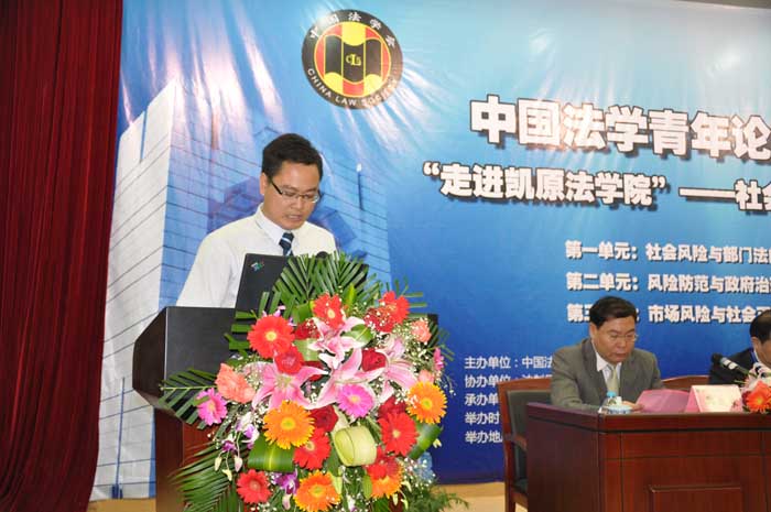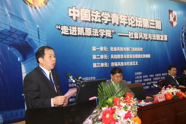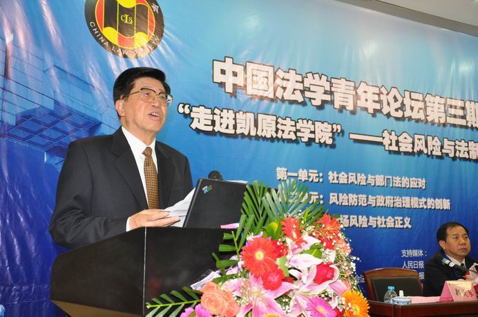 [吴光裕]:我非常高兴地看到,今天的论坛选择“社会风险与法制发展”作为研讨主题,汇聚青年学者对正处于社会转型期的中国所面临的各种社会风险进行判断和分析,有针对性地提出完善相关法律制度的对策和建议,充分展现了大家的实践意识和创新意识。我相信,在大家的共同努力下,论坛一定能够取得积极的成果,为缓冲和化解我国当前面临的各种社会风险,为完善我国的法律制度、推进我国的法治建设贡献出智慧和力量!