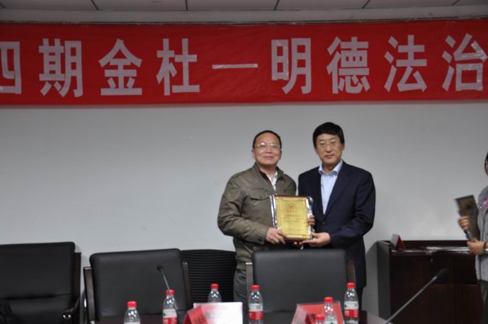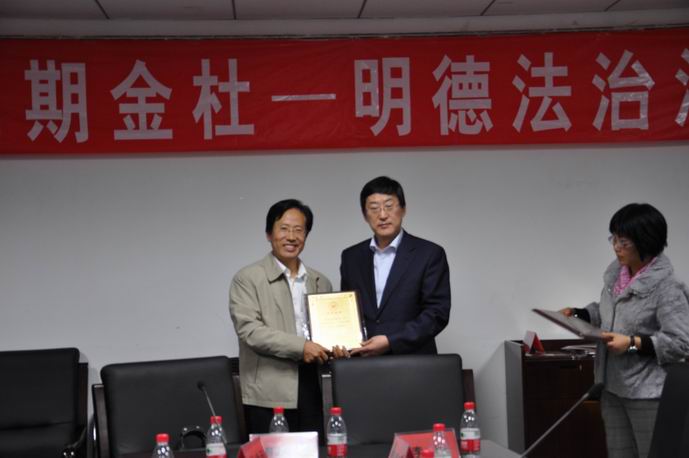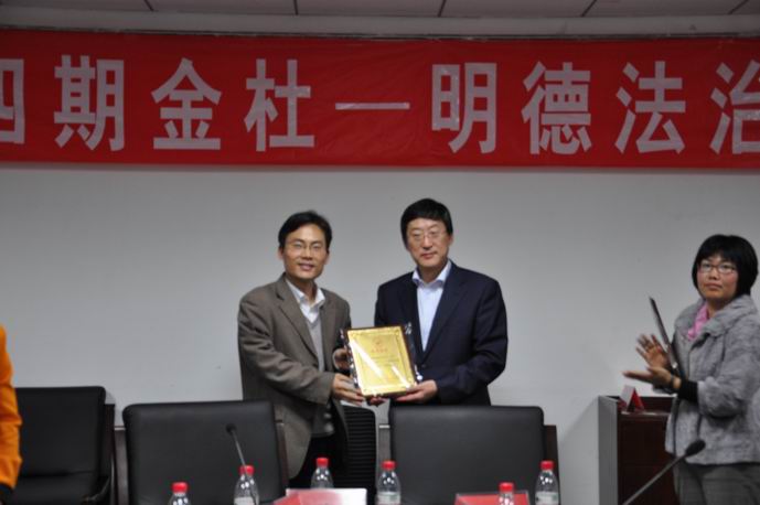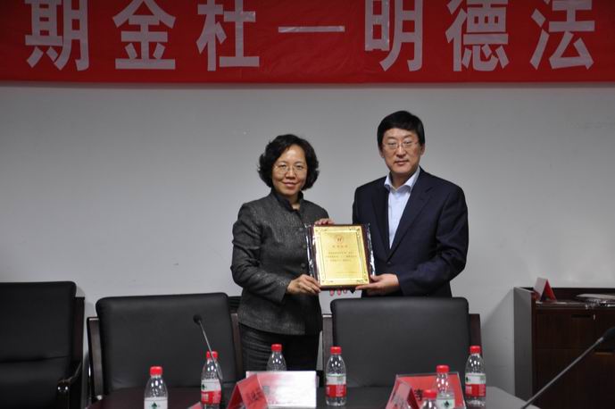 李仕春:各位亲爱的观众,下面插播公益广告。扈纪华主任长期以来支持民事诉讼法学研究会的工作,对金杜明德法治沙龙给予了很大的扶持。第三期她如约而至,第四期她又放下手中的工作赶来,沙龙有今天的局面是和她的支持是分不开的。同时,她是早年毕业于中国政法大学民事诉讼法学专业的法学硕士,理论和实践兼具。基于此,中国人民大学法学院决定聘请扈纪华主任为中国人民大学法治信息研究中心高级研究员。下面请韩大元院长向扈主任颁发聘书。