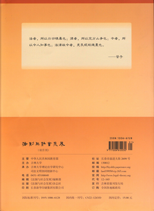 升级改版的《法制与社会发展》封一和封四。刊名由著名书法家言恭达教授题写,四封由法律出版社资深编辑和美编设计。