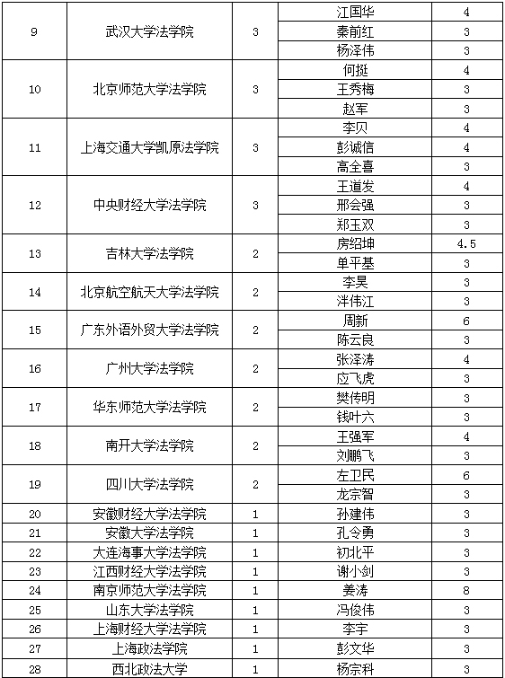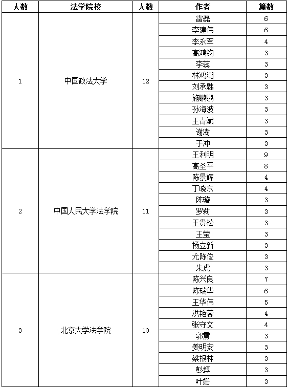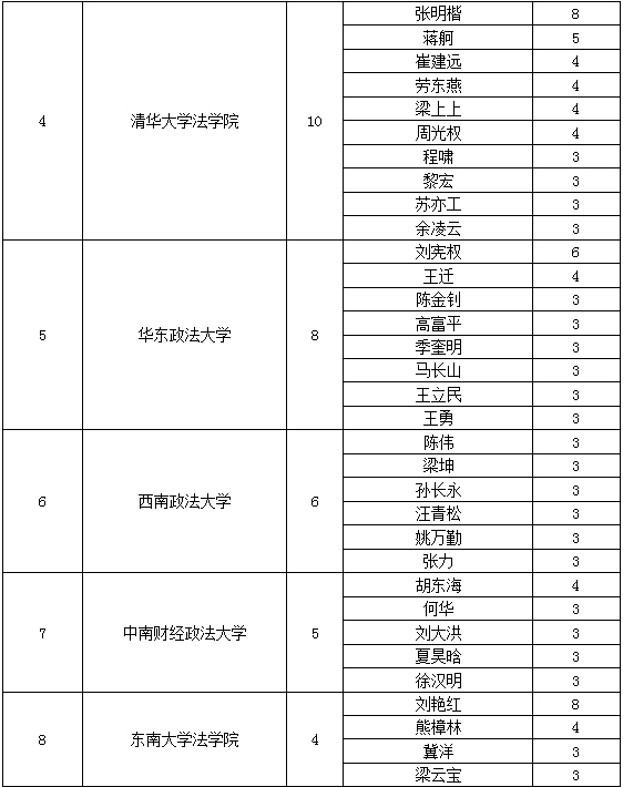 (征求意见稿)2019年clsci期刊高产作者所属法学院校人数统计