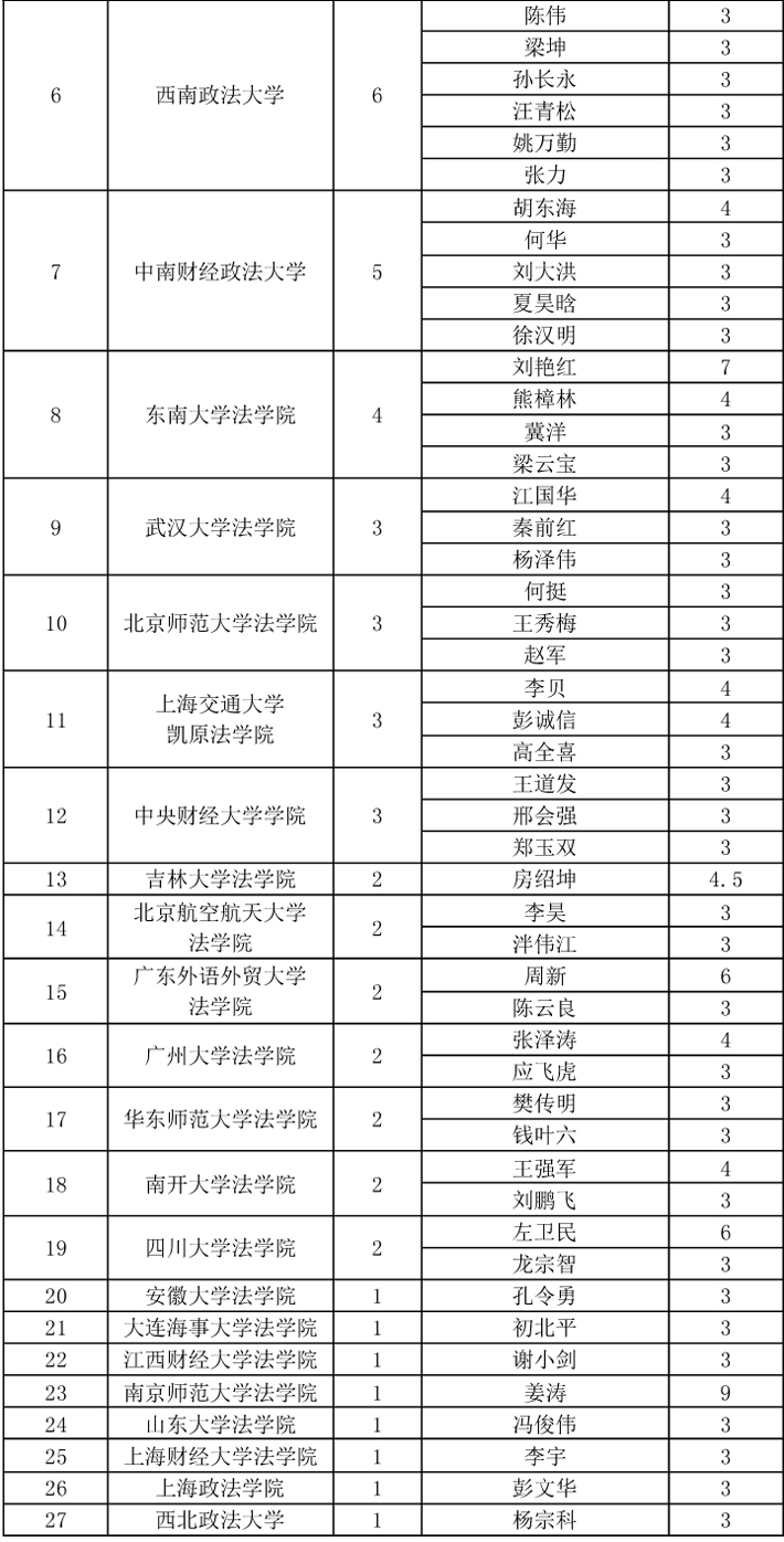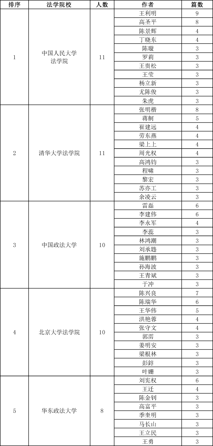 (定稿)2019年clsci期刊高产作者所属法学院校人数统计 -凯发网址