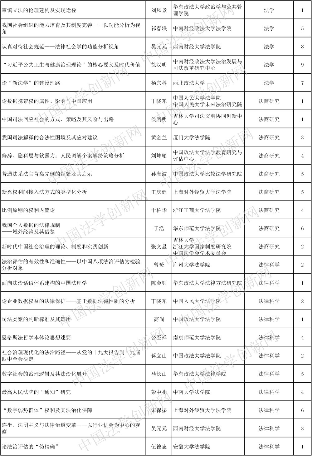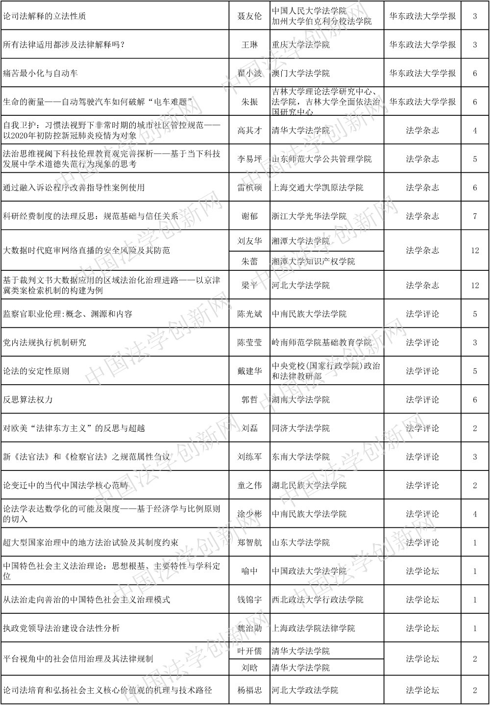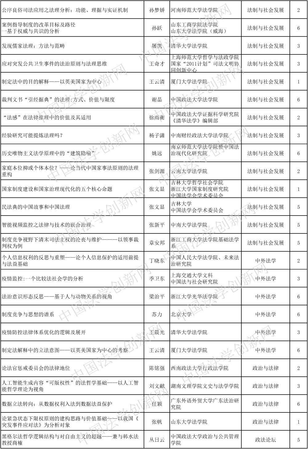 编者按:近日,中国法学创新网对2020年22种clsci来源期刊上发表的论文进行了统计并根据学科分类。自今日起,本网将陆续推出相应学科发文统计,并向法学法律界同仁公开征求意见。如对论文分类有异议,请致电或发邮件至中国法学创新网。联系人:侯老师,电话:010-66188522;电邮:zgfxcxw@163.com
