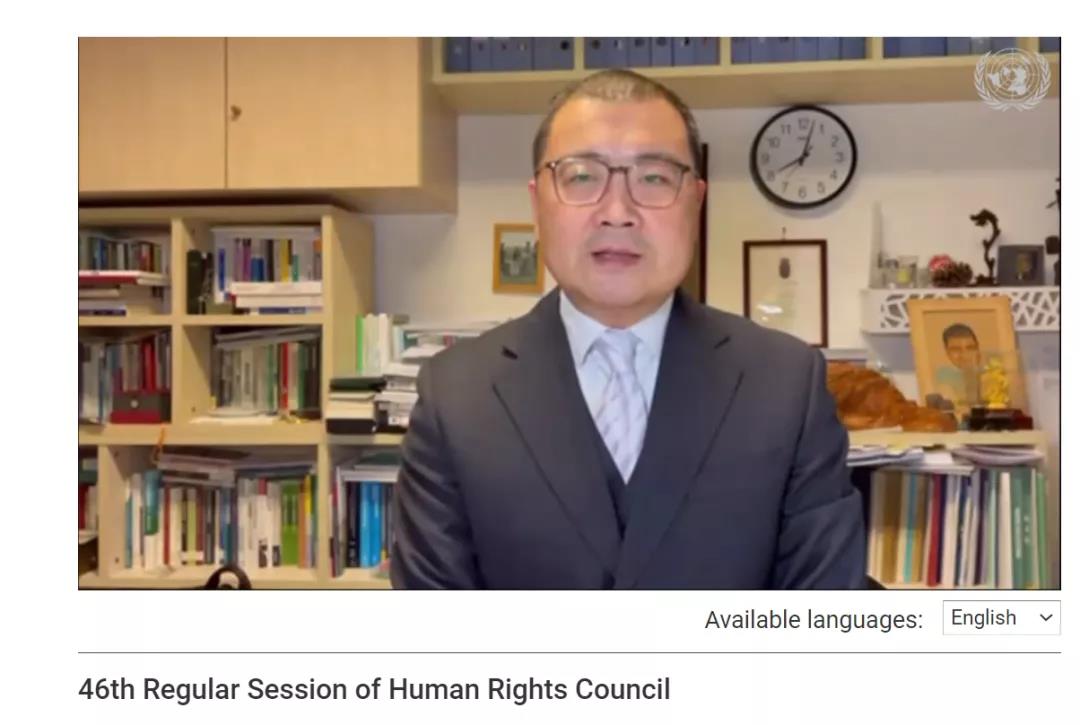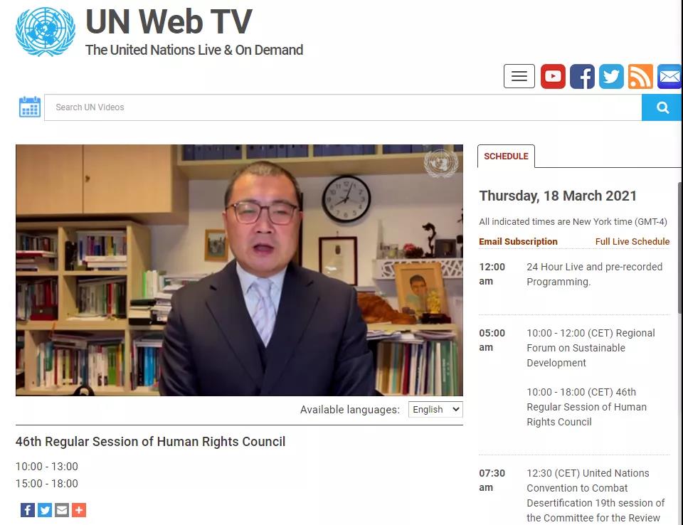 北京时间2021年3月18日晚8时许,武汉大学法学院张万洪教授通过视频,参加联合国人权理事会第46次会议议题6的一般性辩论。张万洪教授指出,联合国人权理事会所进行的普遍定期审议是促进各国人权改善的有力工具。负责任国家的积极参与,对于国际人权机制的健康运转至关重要。各国应在平等和相互尊重基础上开展国际人权合作。张万洪教授敦促美国新政府听取各方意见,在人权事务上改弦更张,切实杜绝其国内警察暴力执法、种族歧视等人权侵犯事件。