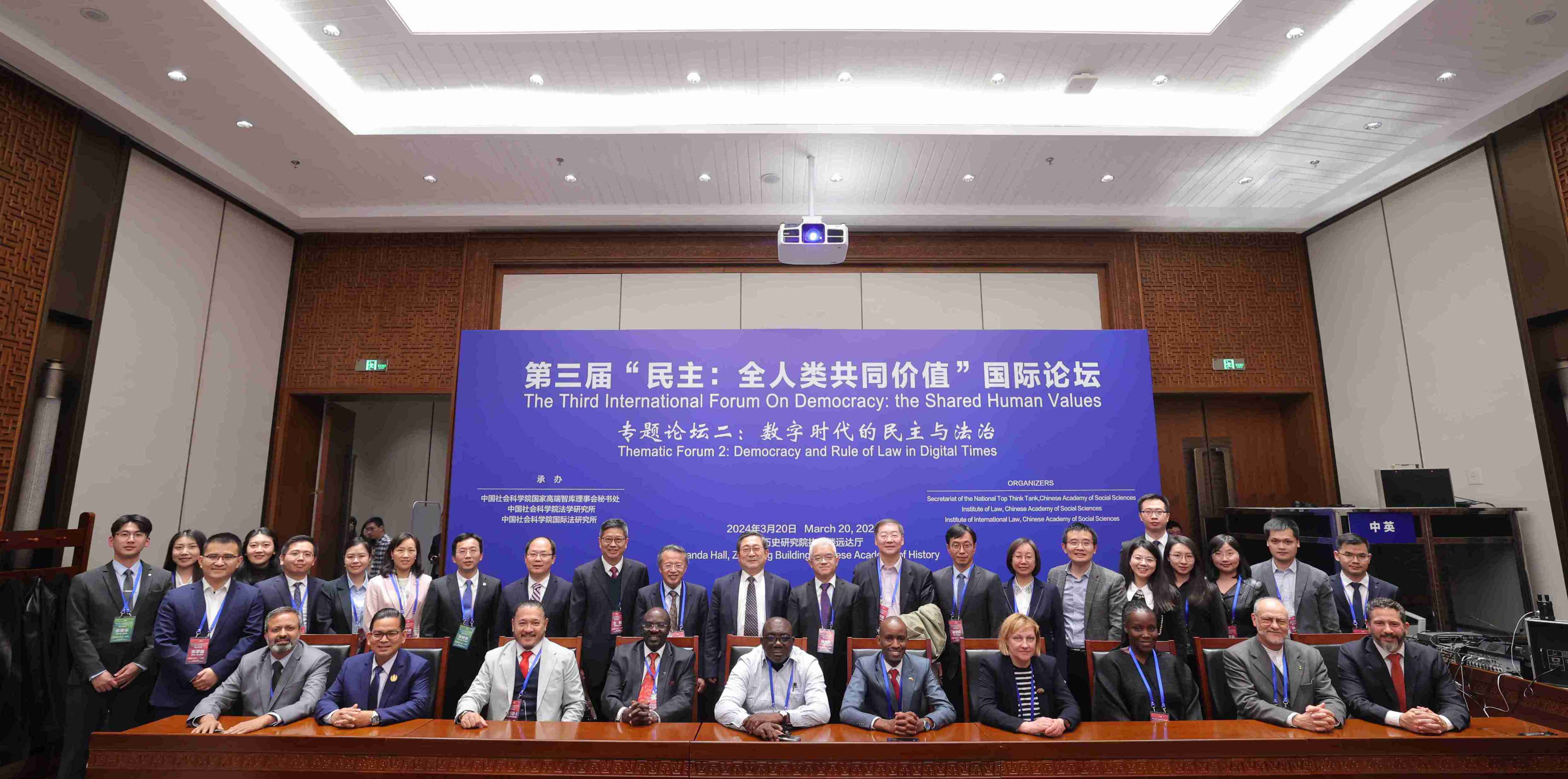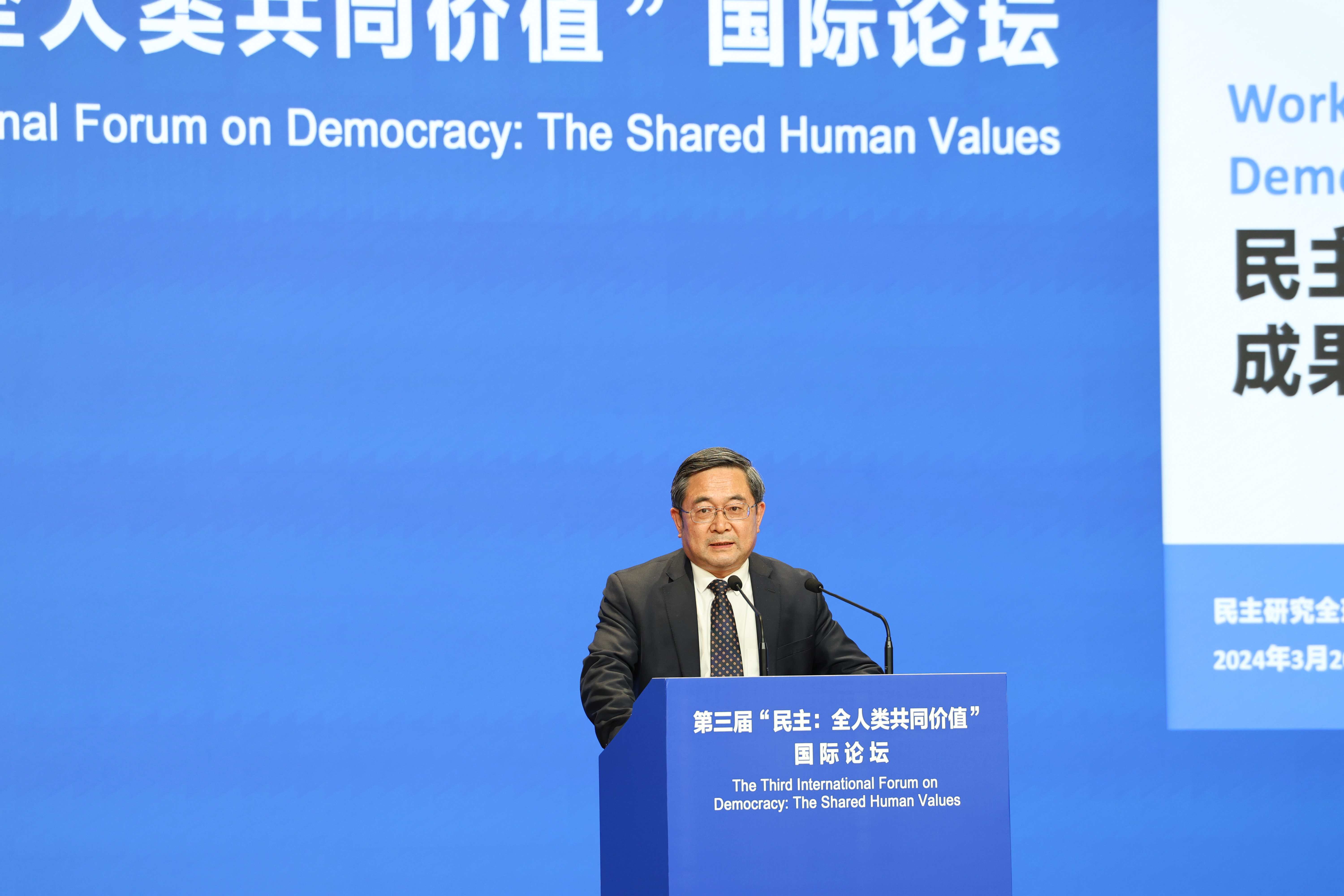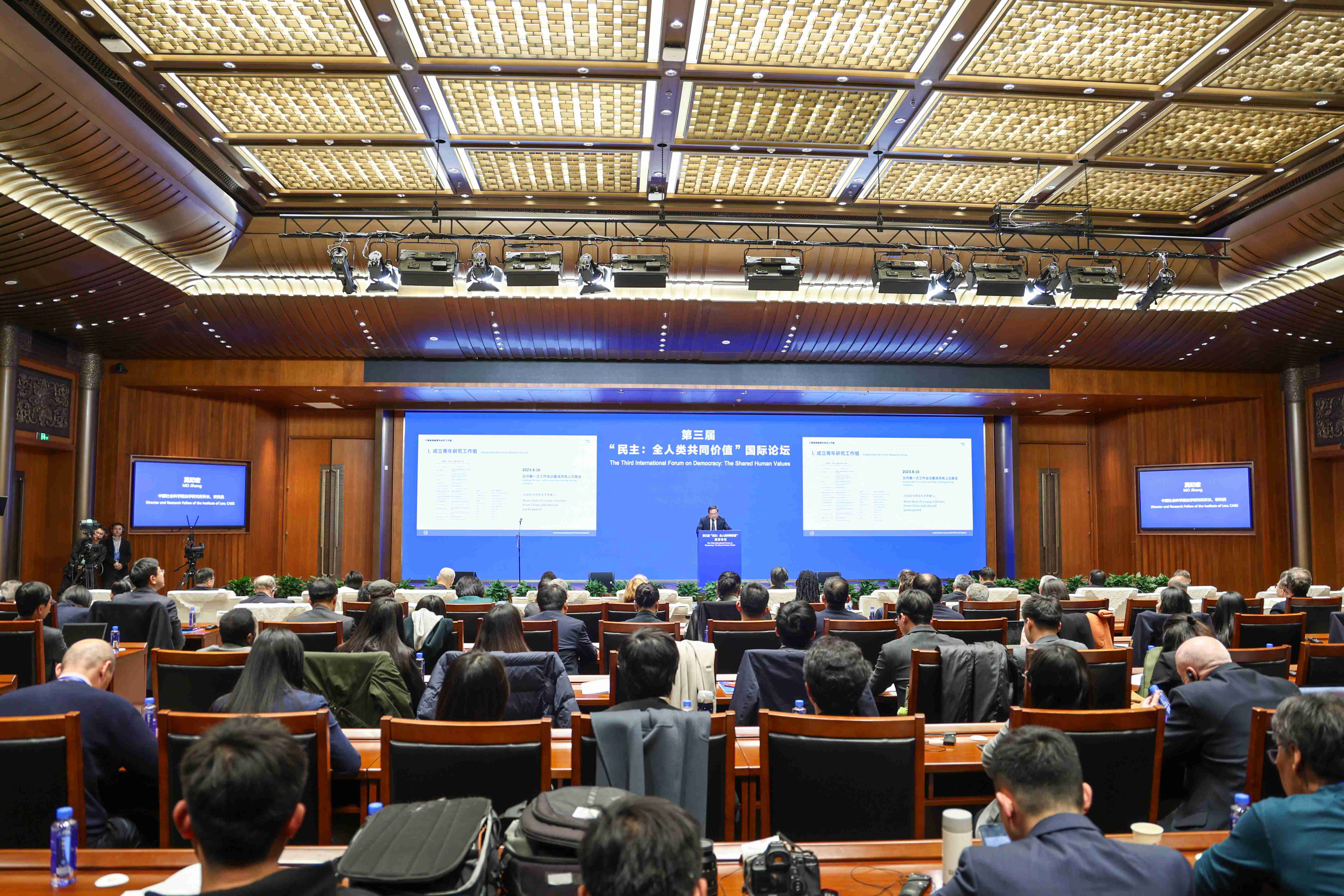 2024年3月20日,第三届“民主:全人类共同价值”国际论坛在京举办。来自多个国家、地区和国际组织的200余名嘉宾围绕“民主与治理现代化”“数字时代的民主与法治”“人工智能与民主的未来”“多极化世界中的民主与全球治理”等议题展开讨论,共商民主真谛和互鉴之道。