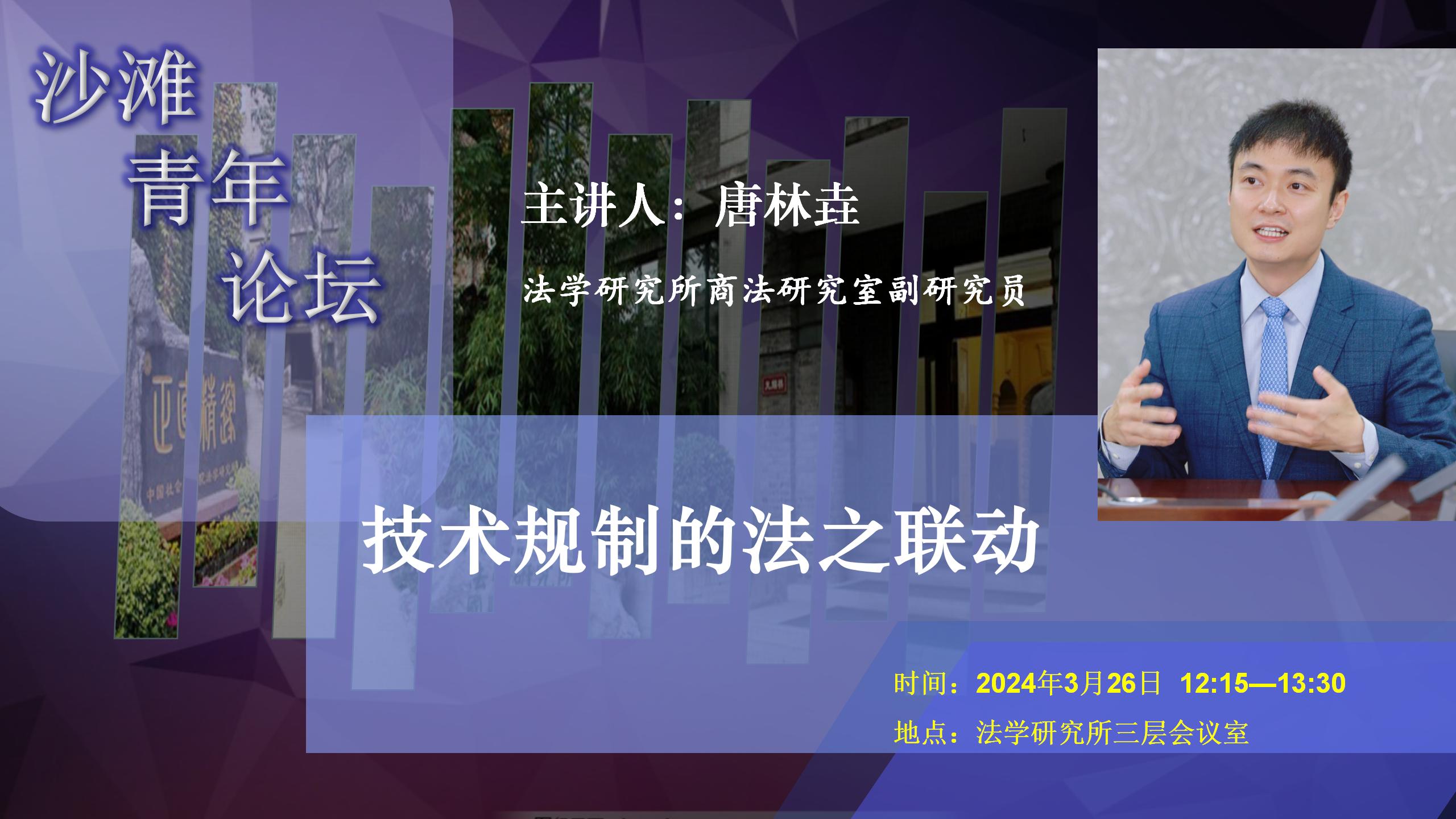 3月26日,由中国社会科学院法学研究所、国际法研究所主办的2024年沙滩青年论坛“法治与中国式现代化”系列讲座第三场在京举行,法学研究所商法室副研究员唐林垚以“技术规制的法之联动”为题作学术报告。