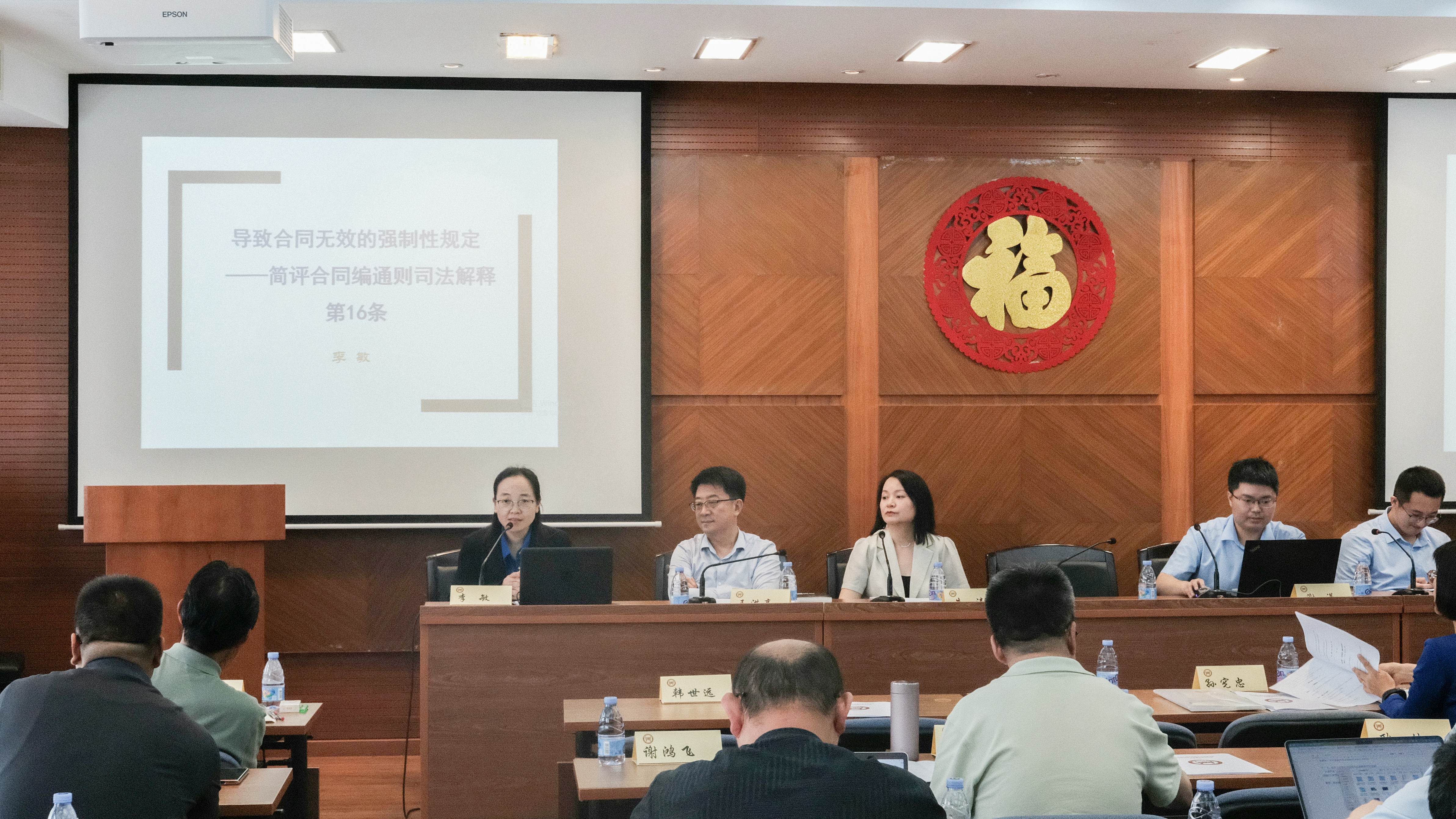 分会场一第一单元由清华大学法学院王洪亮教授主持。重庆大学法学院朱涛教授、中南林业科技大学法学院李敏教授、重庆大学法学院谢潇副教授、中国政法大学黄帅博士、山东财经大学周煜讲师分别以《民事法律的继受与语言转换——以〈大清民律草案〉为例》《论导致法律行为无效的强制性规定》《民法典体系视阈内准法律行为的概念构造与法效安置》《民法典格式条款规范对消费者合同和商事合同的区分适用》《〈民法典〉中“绿色原则”内涵的再探析》为题作学术报告。中国人民大学法学院副院长朱虎教授、中国政法大学民商经济法学院席志国教授担任评议人。