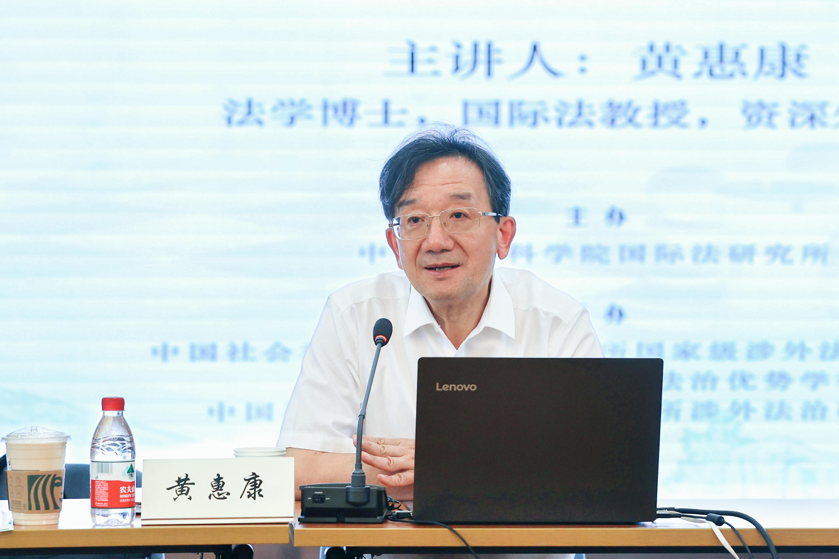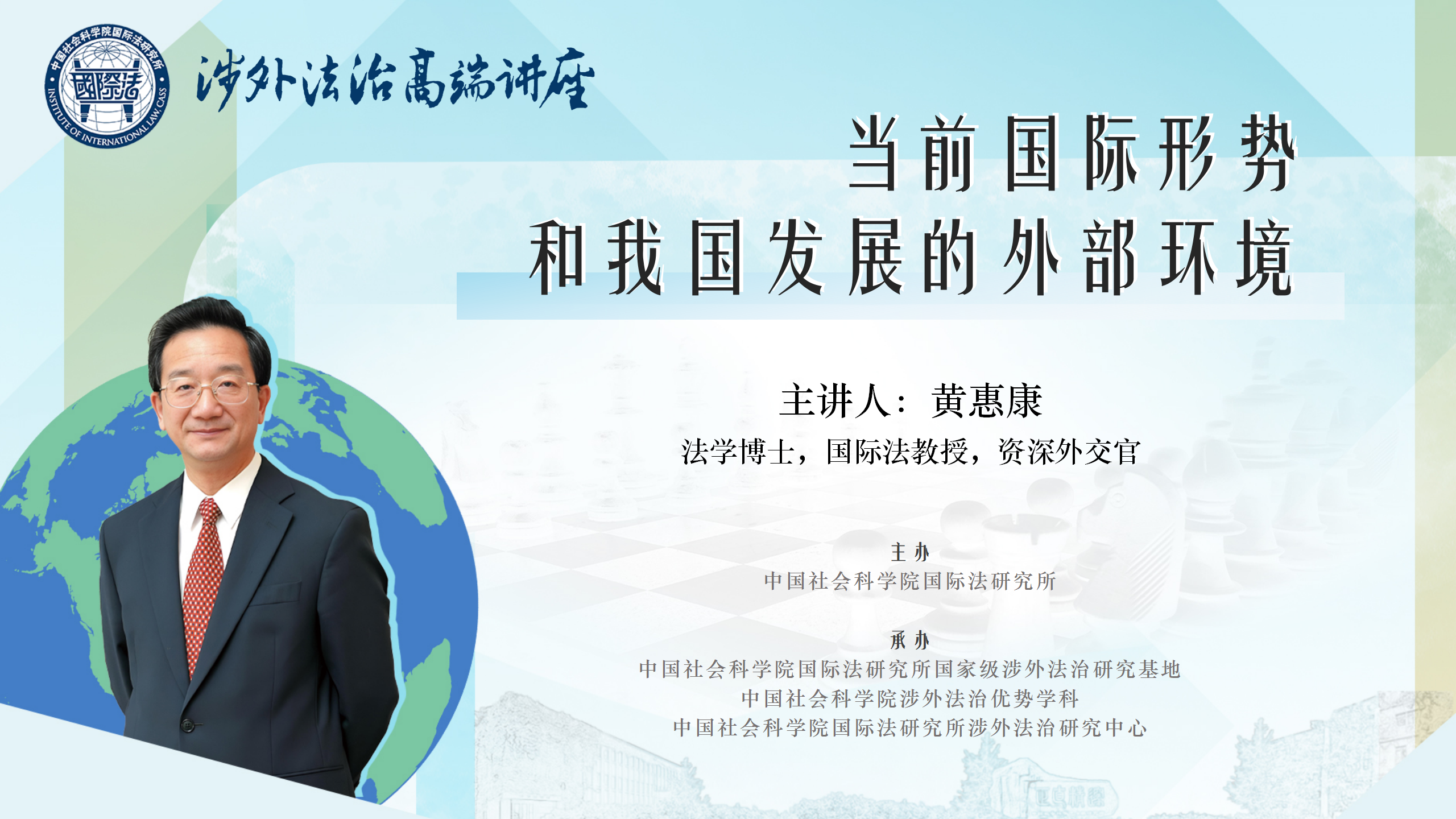 2024年6月26日,中国社会科学院国际法研究所涉外法治高端讲座第三讲在北京举行,联合国国际法委员会委员、国际常设仲裁法院仲裁员、中国外交部国际法咨询委员会主任委员、资深国际法教授黄惠康以“当前国际形势和我国发展的外部环境”为题发表演讲。