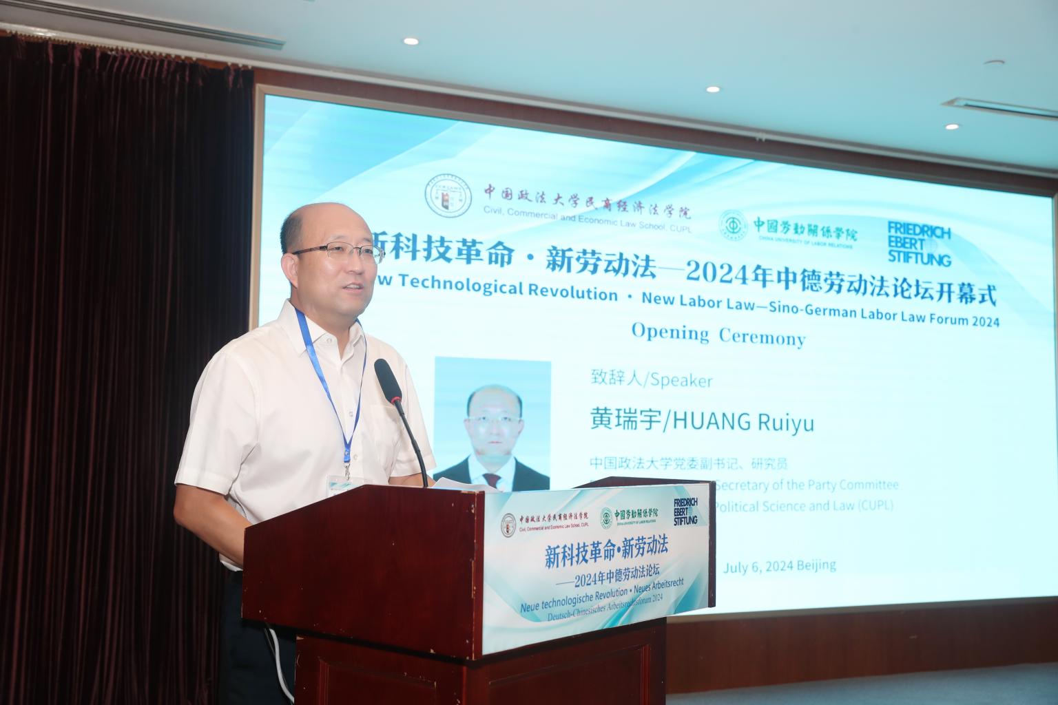 中国政法大学党委副书记黄瑞宇、中国劳动关系学院校长傅德印及德国艾伯特基金会北京代表处首席代表赛巧出席论坛开幕式并致辞。开幕式由中国政法大学民商经济法学院社会法研究所所长娄宇主持。