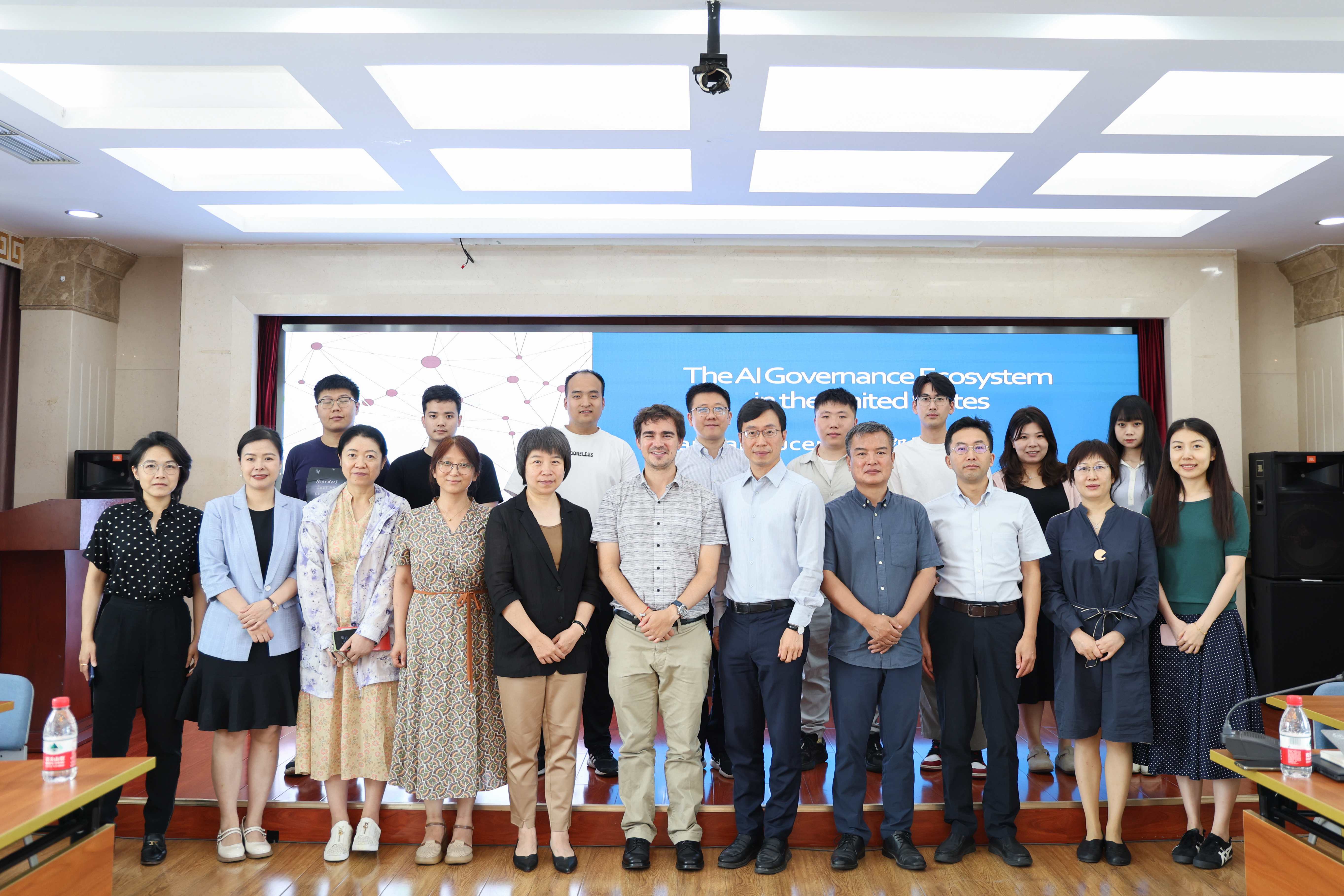2024年7月16日,“美国人工智能治理生态体系”讲座在中国社会科学院法学研究所成功举办。讲座由美国耶鲁大学蔡中曾中国中心研究员陆凯(karman lucero)主讲,法学所网络与信息法室助理研究员刘灿华主持。法学所副所长谢增毅研究员、国际法所副所长丁赛研究员和两所科研人员、中国社会科学院大学研究生共40余人参加讲座。