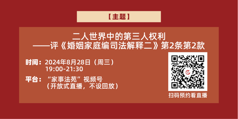 为进一步加强婚姻家事法领域理论界与实务界的交流,中国人民大学法学院婚姻家庭法研究所、中国人民大学民商事法律科学研究中心自2020年5月起特创办“家事法讲坛”(线上)系列研讨活动,邀请法律职业共同体各界嘉宾从多学科、多视角为民法典婚姻家庭编、继承编的正确实施、立法完善以及家事审判改革及家事诉讼程序立法及完善建言献策。