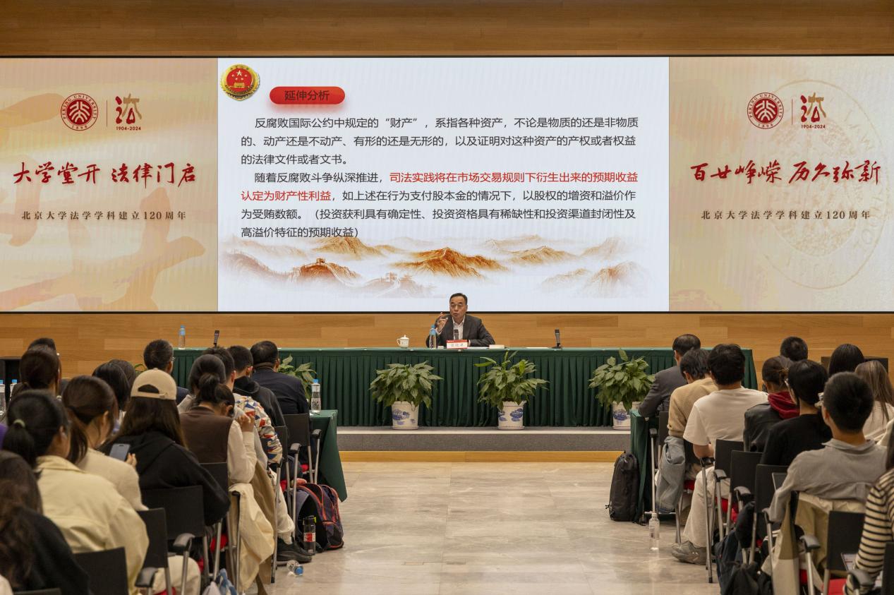 2024年10月15日下午,最高人民检察院“检察实务专家进校园”走进北京大学启动仪式在北京大学举行。启动仪式后,最高检职务犯罪检察厅厅长张晓津为北京大学法学院师生作《高质效履行职务犯罪检察职能,更好服务反腐败工作大局》专题讲座。一百三十余名法学院师生和司法实务工作人员参加讲座,讲座由北京大学法学院副院长刘哲玮主持。