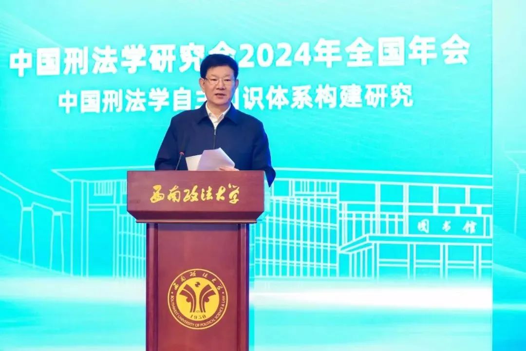 王其江在致辞中对中国刑法学研究会的工作表示充分肯定。他指出,哲学和社会科学事业是党和人民的重要事业,加快构建中国特色哲学社会科学,归根结底是建构中国自主的知识体系。法学作为哲学社会科学的重要组成部分,既是国家制度和法律制度的理论概括,也是治国理政的理论科学。要推动中国刑法学自主知识体系的构建,体现中国理念、中国价值、中国精神,为坚定制度自信提供制度支撑;深化风险刑法理论研究,围绕群众反映强烈的有组织犯罪、单位犯罪、电信网络诈骗犯罪等违法犯罪活动,形成更多具有针对性的对策研究成果;深化刑法学研究的国际合作,推动涉外刑事法治建设,服务高水平的对外开放,提高我国在全球治理体系变革中的话语权和影响力。