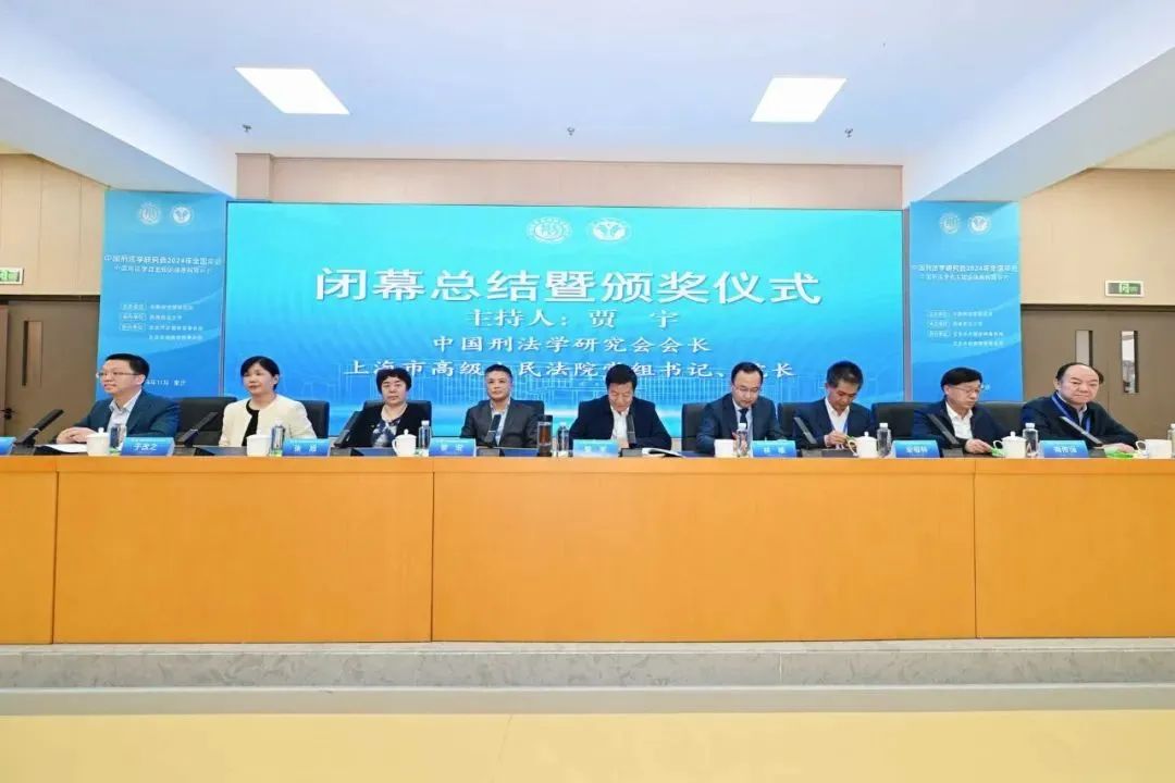 平行论坛和研究生论坛结束后,大会举行闭幕总结暨颁奖仪式,有近300人出席。闭幕式由中国刑法学研究会会长、上海市高级人民法院党组书记、院长贾宇主持。西南政法大学教授贾健,中国刑法学研究会理事、中南财经政法大学教授周详,中国刑法学研究会理事、武汉大学教授李本灿,中国刑法学研究会理事、华东政法大学教授徐光华,中国刑法学研究会理事、中国政法大学教授于冲,《中国社会科学院大学学报》编辑部副主任方军分别就平行论坛以及研究生论坛的研讨议题作学术总结。