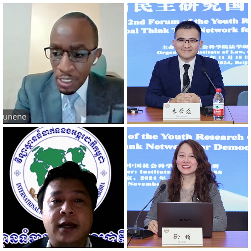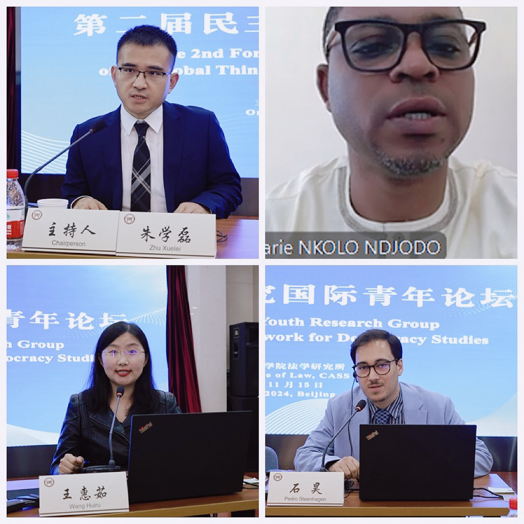 为促进各国青年学者对民主理论与实践的深入研究,2024年11月15日,中国社会科学院法学研究所在京举办第二届民主研究国际青年论坛。论坛以线上线下相结合的形式举行,来自中国、巴西、尼泊尔、柬埔寨、肯尼亚、喀麦隆等国家和地区的专家学者共30余人参加。