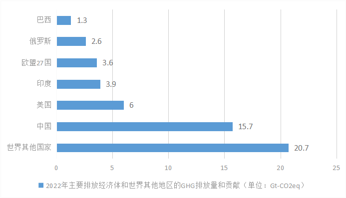 图1 2022年主要排放经济体和世界其他地区的ghg排放量和贡献