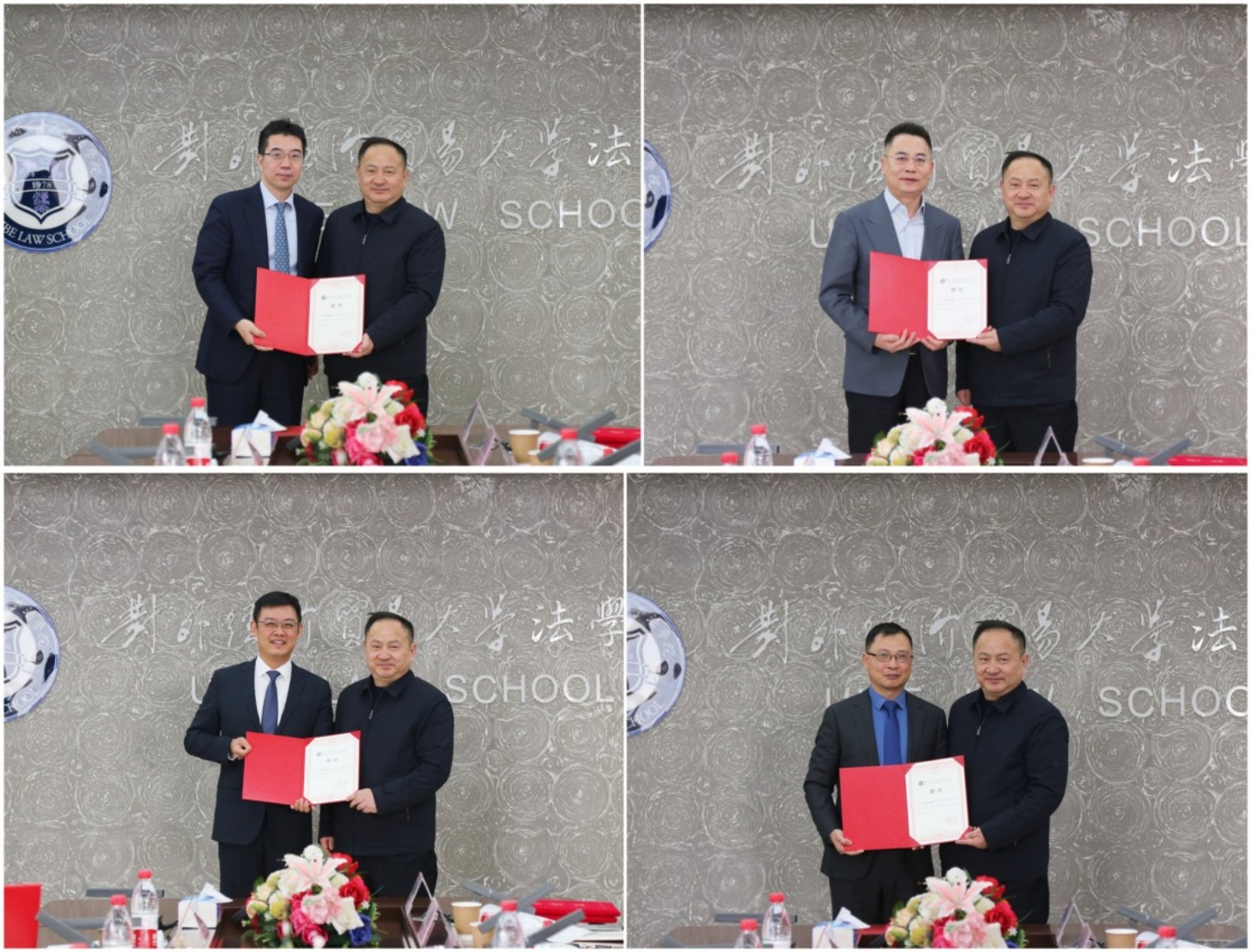 梅夏英副校长为君泽君律师事务所钟向春、李云波、李旸、刘良勇等颁发了兼职导师聘书。