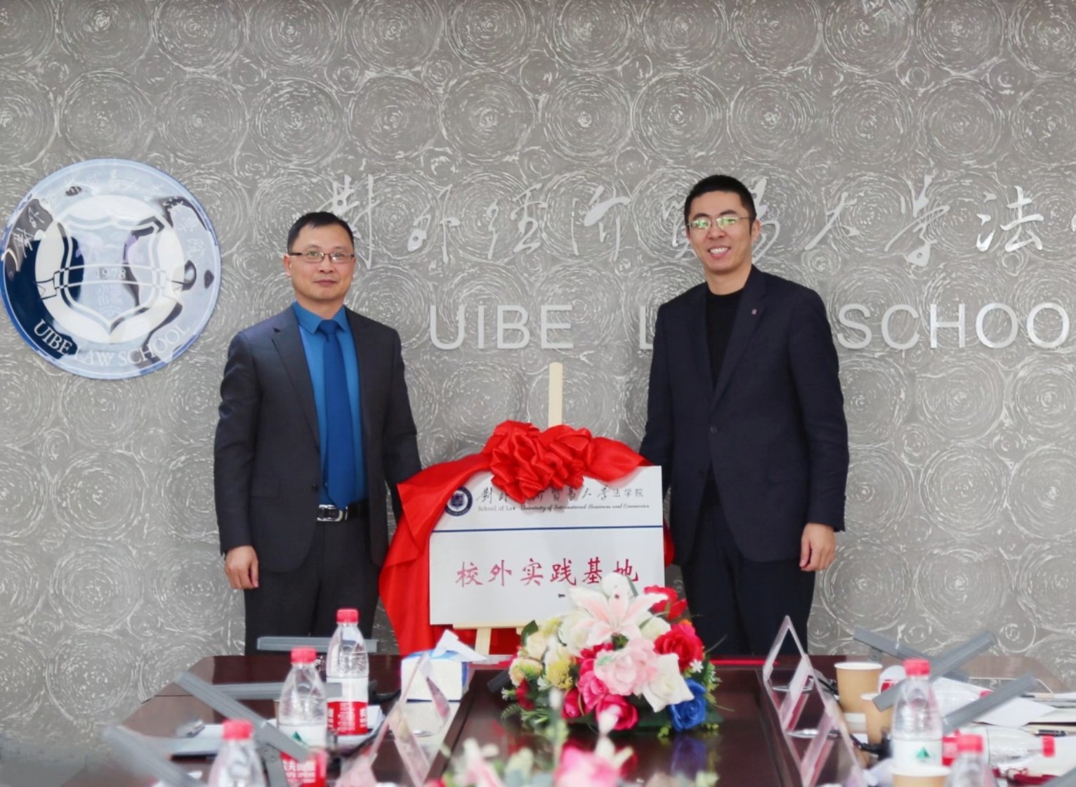 君泽君律师事务所刘良勇和对外经济贸易大学法学院副院长冯辉为“校外实践基地”牌匾揭牌。