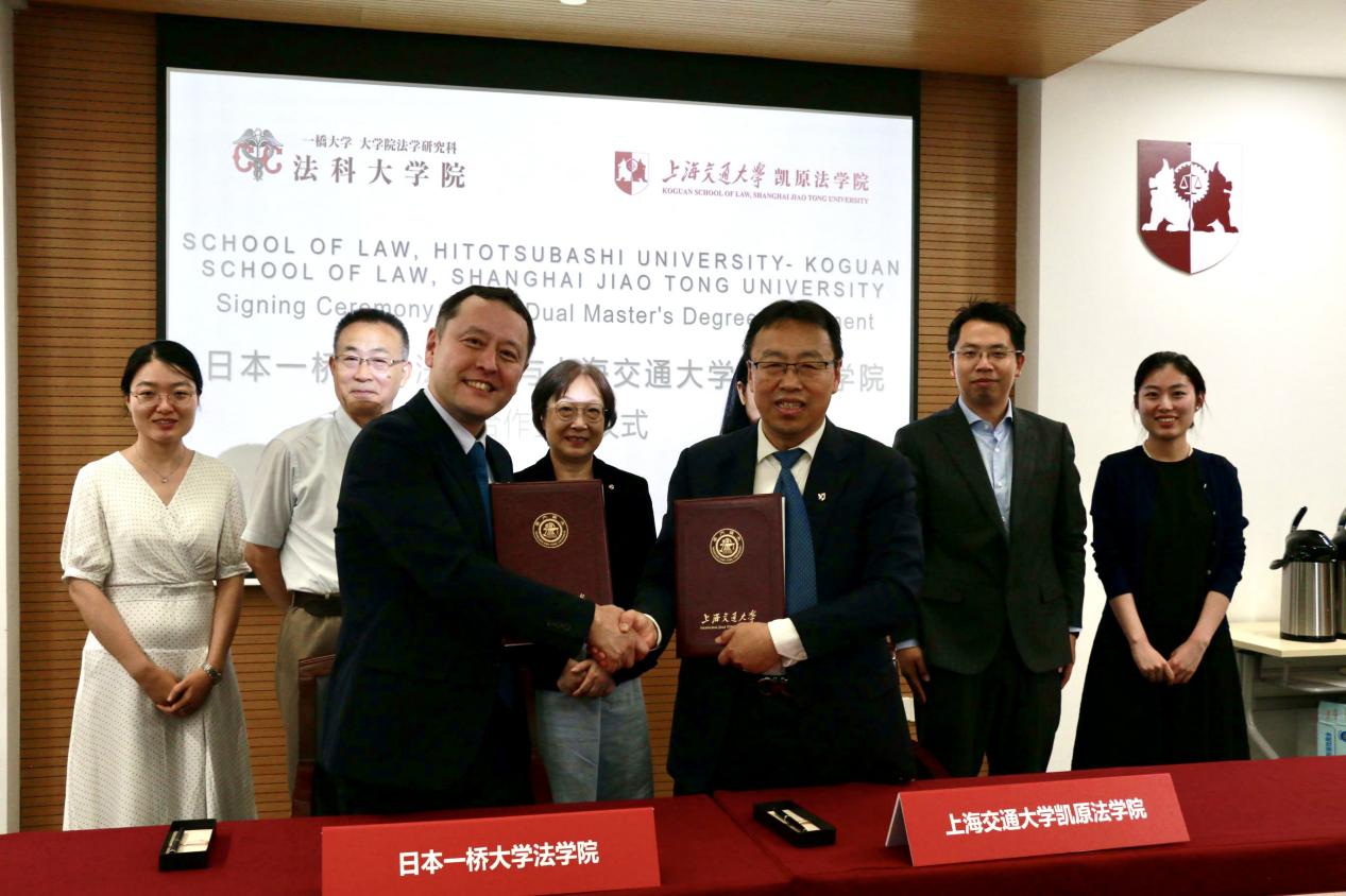 7月18日,上海交通大学凯原法学院院长彭诚信教授与一桥大学法学院院长竹下啓介教授分别代表两院在凯原法学院签署《上海交通大学凯原法学院与一桥大学法学院双硕士学位项目协议》。日本一桥大学法学院王云海教授、上海交通大学凯原法学院副院长郭延军教授、于改之教授、院长助理张国斌副教授、国际化办公室副主任殷澜等参加签约仪式。