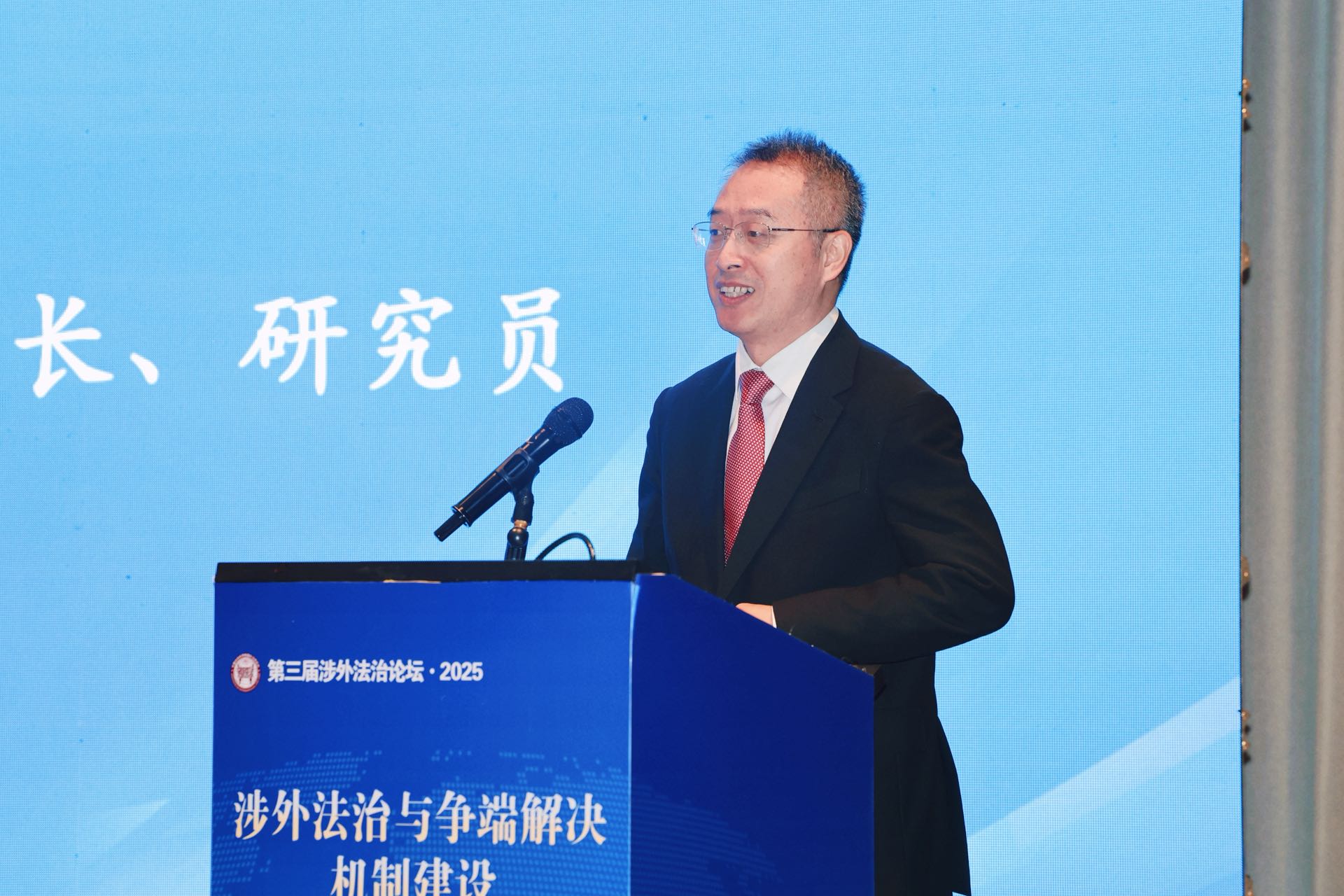 中国社会科学院国际法研究所所长、联合国禁止酷刑委员会委员柳华文在开幕致辞中表示,在学习贯彻党的二十届四中全会精神的背景下召开此次涉外法治论坛意义重大。我国涉外法治建设正在全面推进,亮点纷呈。2023年制定实施的《对外关系法》是涉外立法中里程碑式的成就,2025年国际调解院的正式成立是争端解决机制的创新。推动涉外法治的过程中进一步加强国际法的研究和运用是重中之重,必须重视人才培养,深度参与国际规则的制定、解释和实施。