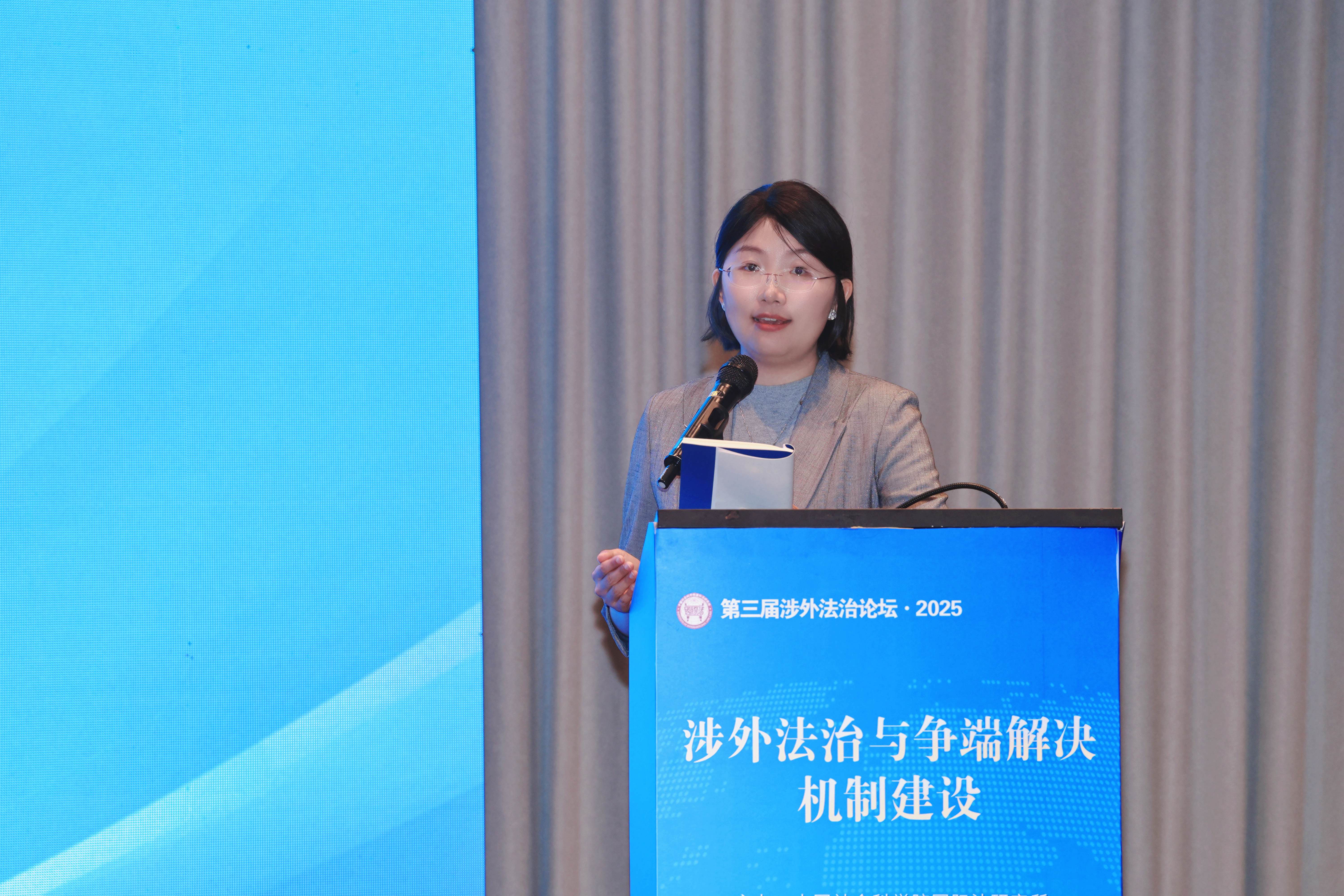 中国社会科学院国际法研究所助理研究员王惠茹以《论公法域外管辖的原则与限度——以美国出口管制法为切入》为题发言,以美国出口管制法为样本,提出公法域外管辖需遵循主权平等原则和比例原则,为应对单边制裁提供理论支撑。