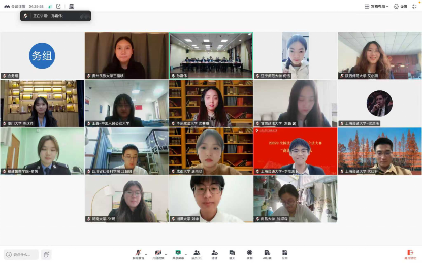 2025年11月15日,2025年度全国法科学生模拟立法大赛决赛和颁奖典礼在华东政法大学交谊楼第四会议室隆重举行。来自中国人民大学、厦门大学、湘潭大学、中南财经政法大学、江西财经大学、中国政法大学、辽宁师范大学、上海师范大学、上海立信会计金融学院、贵州民族大学华东政法大学等高等院校的二十余名专家学者参加会议。