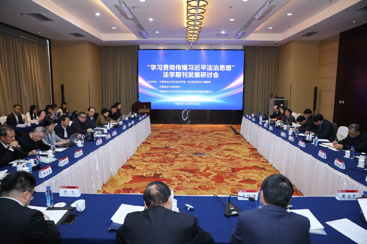为深入学习贯彻党的二十届四中全会精神和中央全面依法治国工作会议精神,11月24日下午,由中国政法大学比较法学院、《比较法研究》编辑部、科研处共同主办的“学习贯彻传播习近平法治思想”法学期刊发展研讨会在北京召开。