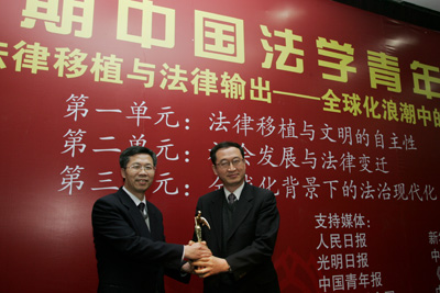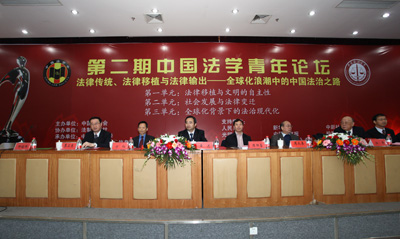 开幕式结束之后,以“法律传统、法律移植与法律输出——全球化浪潮中的中国法治之路”为主题的第二期论坛正式拉开帷幕。今年,我国将初步建成社会主义法律体系。在依法治国,建设社会主义法治国家的过程中,我国的法制建设要立足于全球化的时代背景和法制现代化的实际需求,处理好中国法制传统的继承、域外法律的移植及中华法律文化的输出的关系。既要善于吸收世界先进法治文明成果,又要积极参与全球化和法制现代化的过程,为世界法制文明做出自己的贡献,同时坚持文明发展的自主性。因此,本期论坛专门研究该主题,具有重要的理论价值和现实意义。