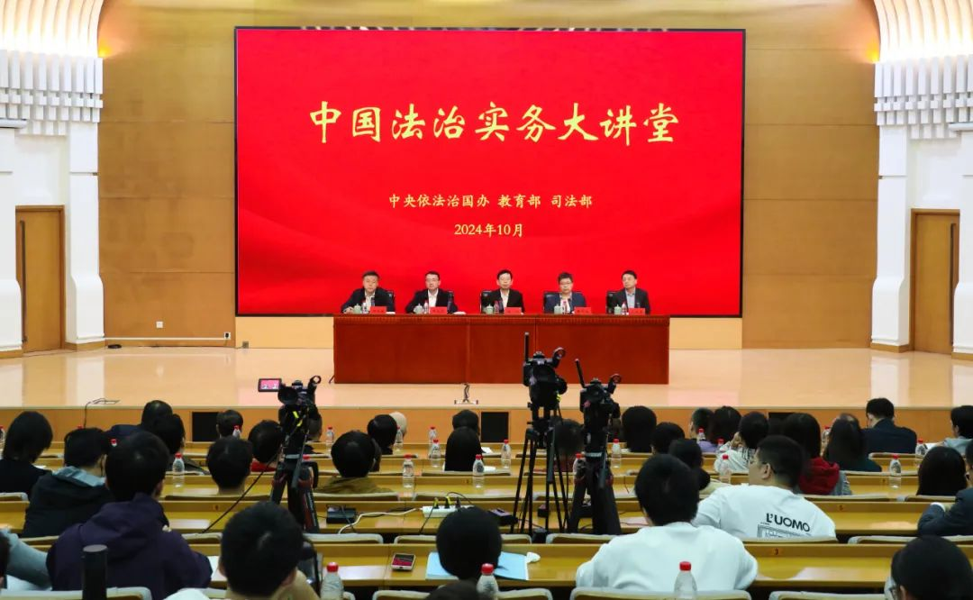 10月17日,中央依法治国办、教育部、司法部在中国人民大学联合举办“中国法治实务大讲堂”启动仪式暨首讲授课,司法部党组成员、政治部主任黄祎出席启动仪式并授课,中央依法治国办、最高人民法院、最高人民检察院、教育部、公安部、司法部有关负责同志出席活动。中国人民大学校长林尚立同志出席并讲话,党委常委、副校长王轶同志全程参加,法学院师生代表200余人线下参加活动。