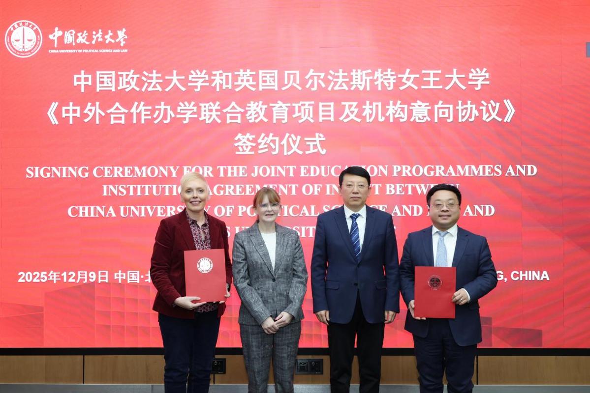 会上,双方就深化教育合作、推动合作办学等议题深入探讨,并在姜泽廷和阿奇博尔德的见证下正式签署《中外合作办学联合教育项目及机构意向协议》。此次访问将进一步推动中国政法大学与北爱尔兰在高等教育领域的务实合作,为创新人才培养注入新动能。